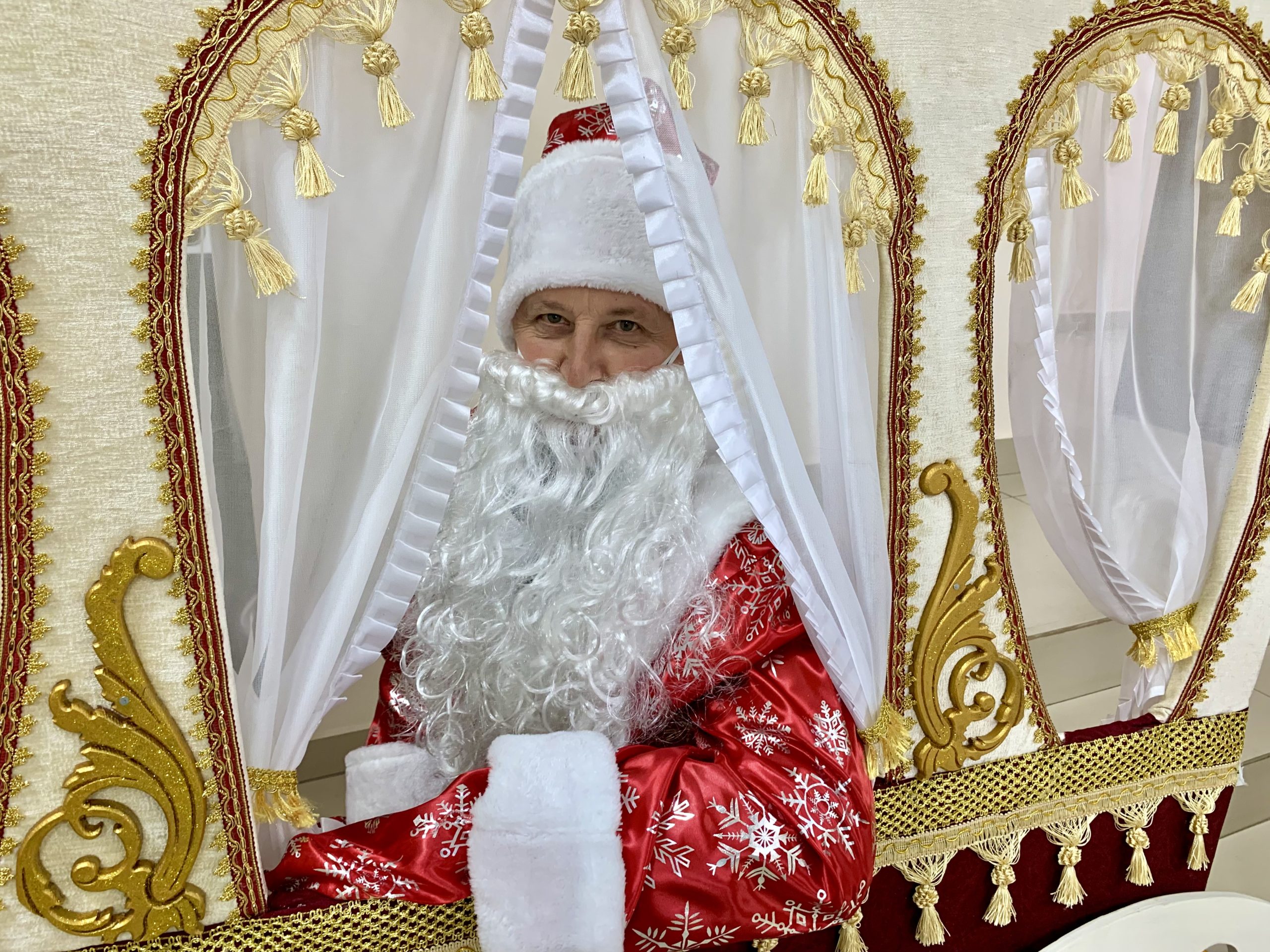 Председатель ТИК Калининская г. Краснодара Елена Долгополова в роли Снегурочки и системный администратор КСА ГАС «Выборы» ТИК Калининская г. Краснодара Андрей Лопатюк в роли Деда Мороза сегодня поздравили с наступающим Новым годом и вручили подарок дочери бойца, Софии, в семье члена УИК, находящегося в зоне проведения специальной военной операции.