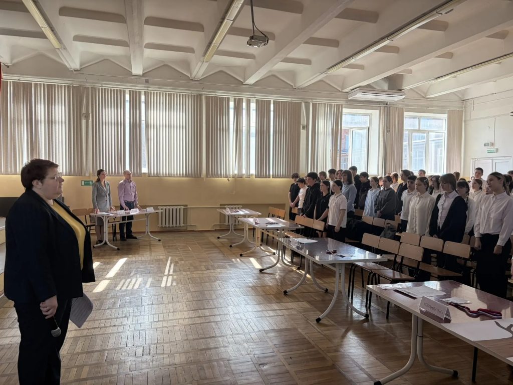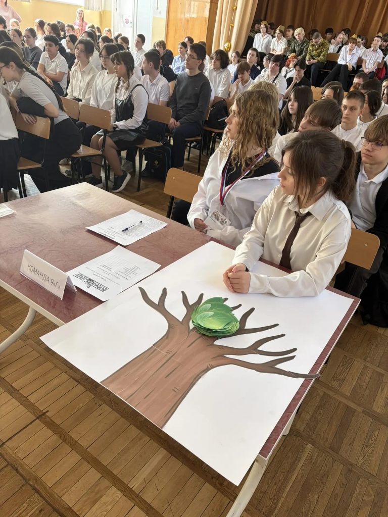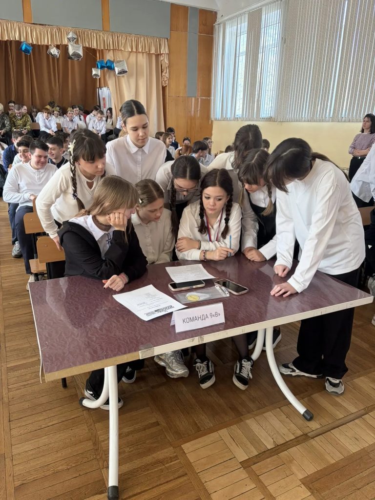 Четыре команды — 9 «А», 9 «Б», 9 «В» и 9 «Г» — соревновались в знании культуры народов России и избирательного права.