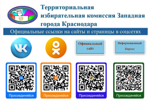 Для оперативного информирования избирателей и участников избирательного процесса созданы официальные страницы ТИК Западная г. Краснодара в социальных сетях «Вконтакте» (https://vk.ru/club237097281/) и «Одноклассники» (https://ok.ru/group/70000054606130).